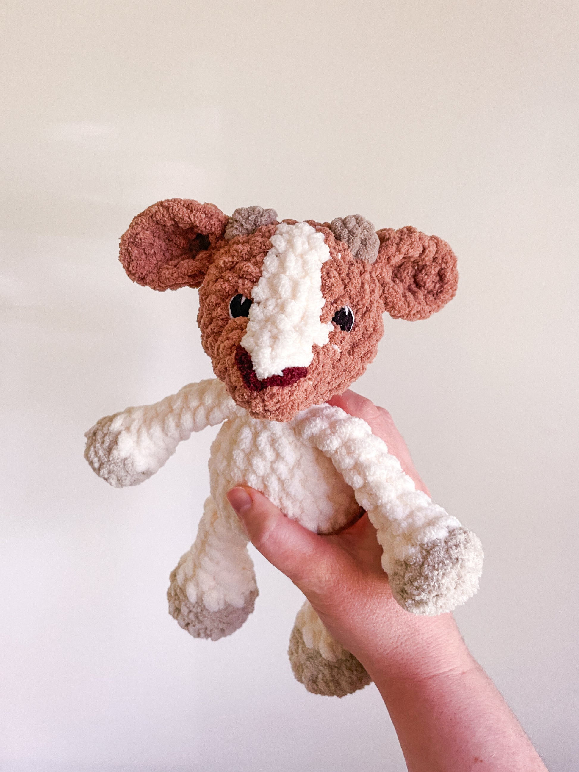 Crocheted with plush yarn and 100% cotton hand-embroidered details, safe for all ages.