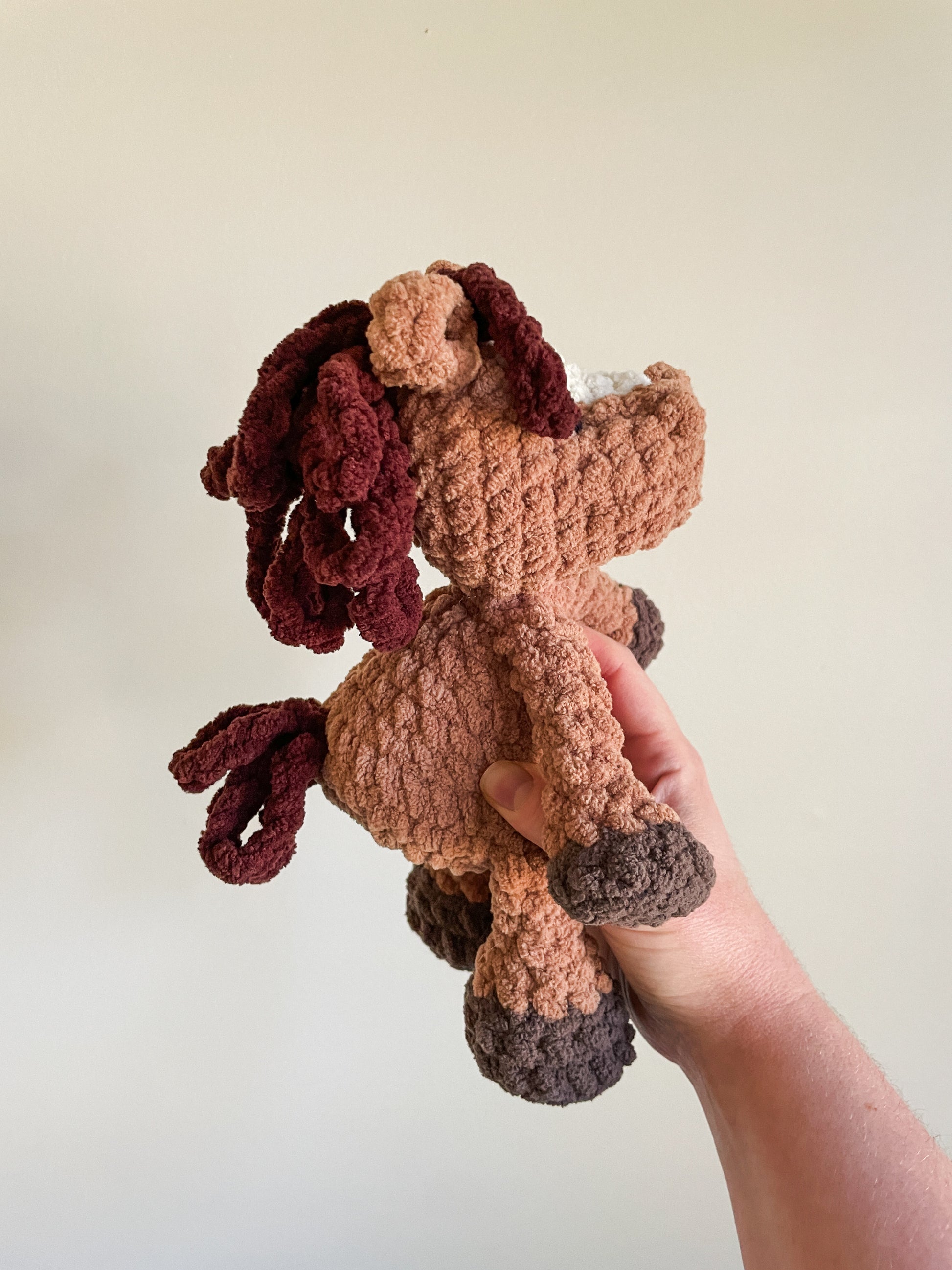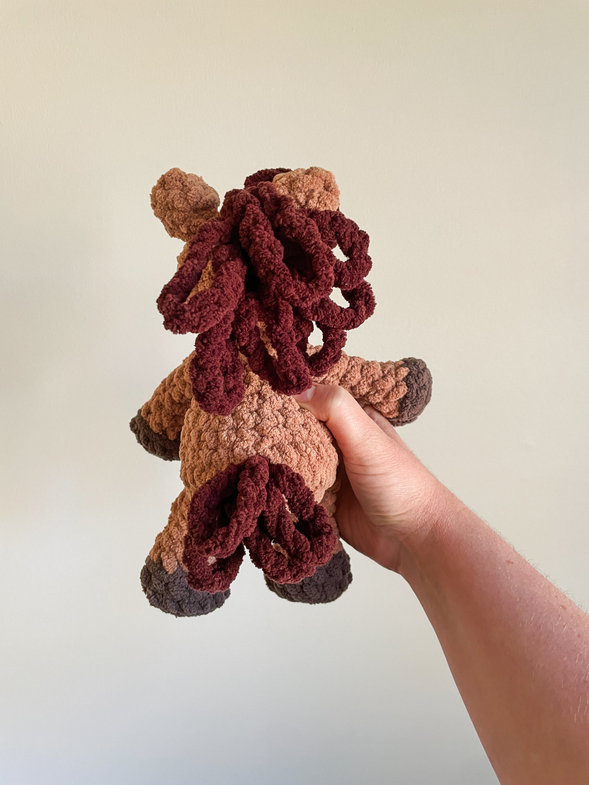 Crocheted with plush yarn and 100% cotton hand-embroidered details, safe for all ages.